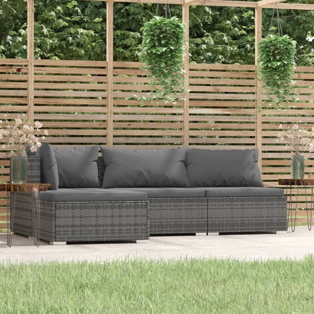 Home > 4 Piece Patio Lounge Set with Cushions Gray Poly Rattan