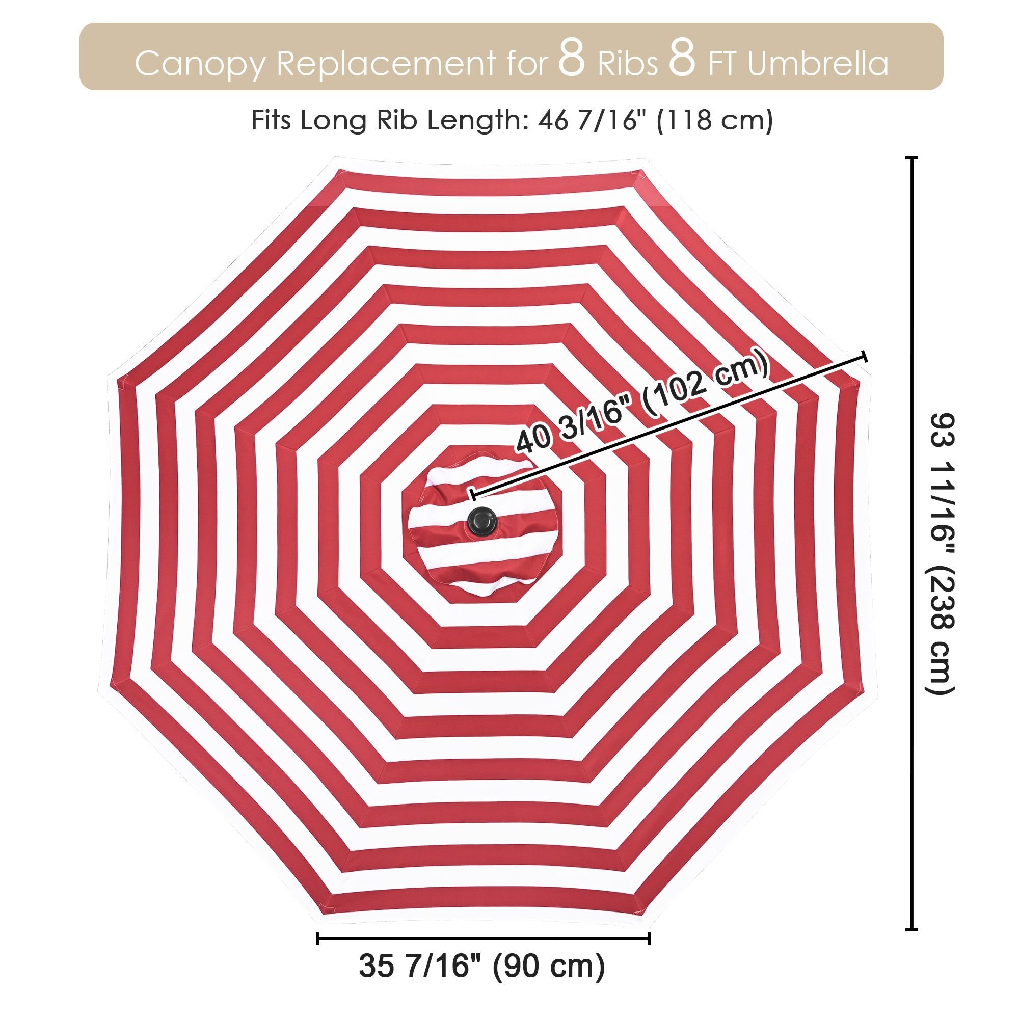 - Universal Cover Replacement - 8 ft Universal Replacement Umbrella Canopy fits 8ft umbrella with 8ribs (3 5/6ft in length); to change your old umbrella with brand new top cover; also new color for good mood to brighten up your day