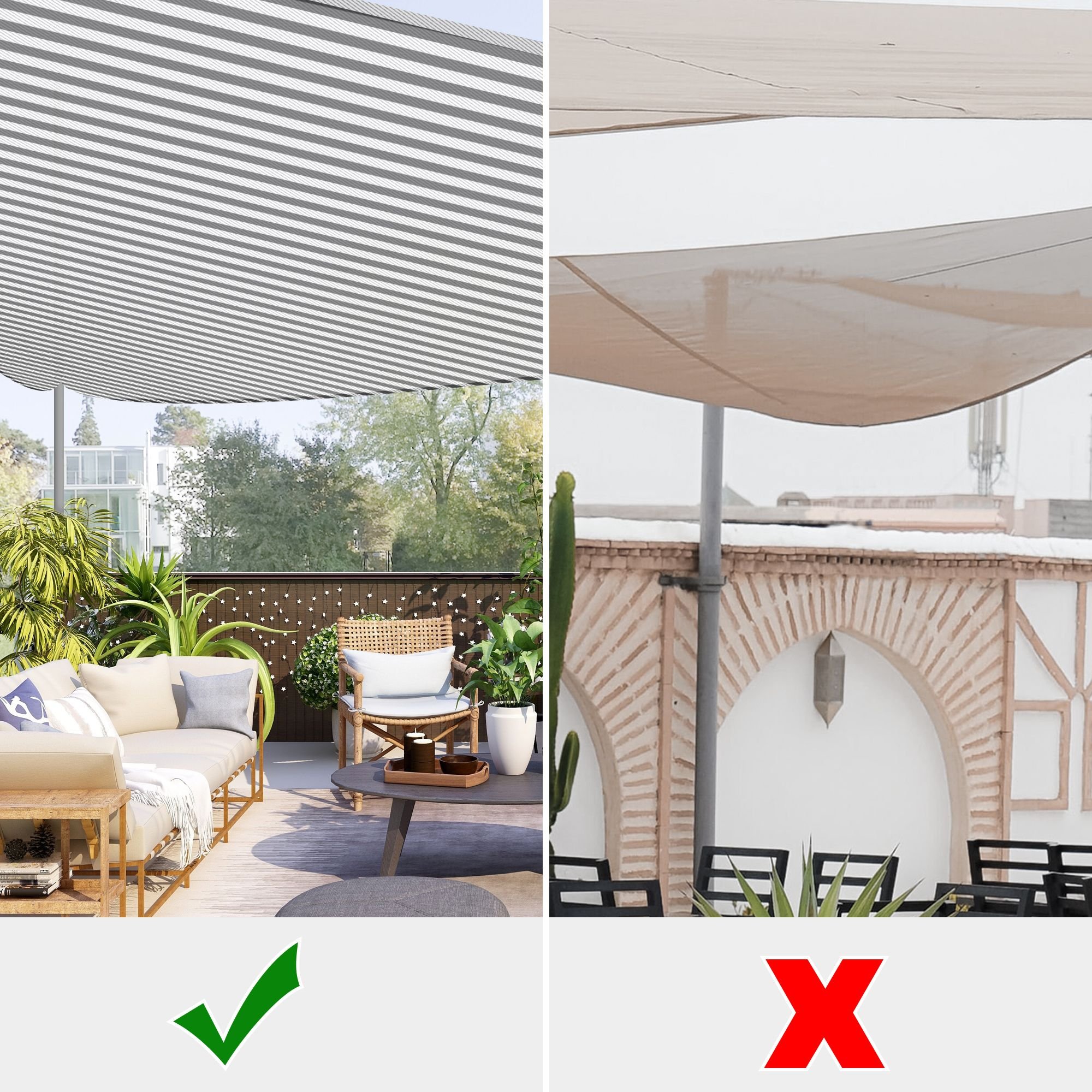 - Easy to Assembly & Maintenance - Hanging ropes included for convenient installation by simply connecting stainless steel D-shape rings and the mounting points; Foldable design for space-saving storage and washable sail for easy cleaning