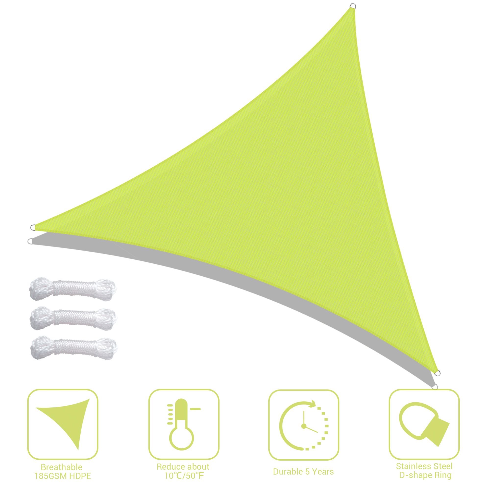 - Durable in Use - Triple stitched seam reinforces the edge to prevent fraying and ripping; Curved triangle shape helps the sail to keep tight; Heavy-duty nylon ropes included; Anti-ager composition added for long time service