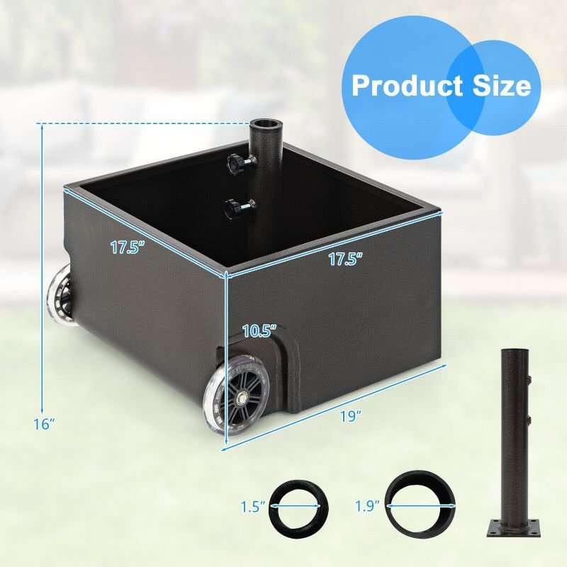 Filled with Wet Sand: Designed for offset and cantilever umbrellas; this base weight can help you secure your umbrella firmly. Especially when all four base plates are filled with wet sand; it can weigh up to 238 pounds and improve umbrella stability in windy conditions
