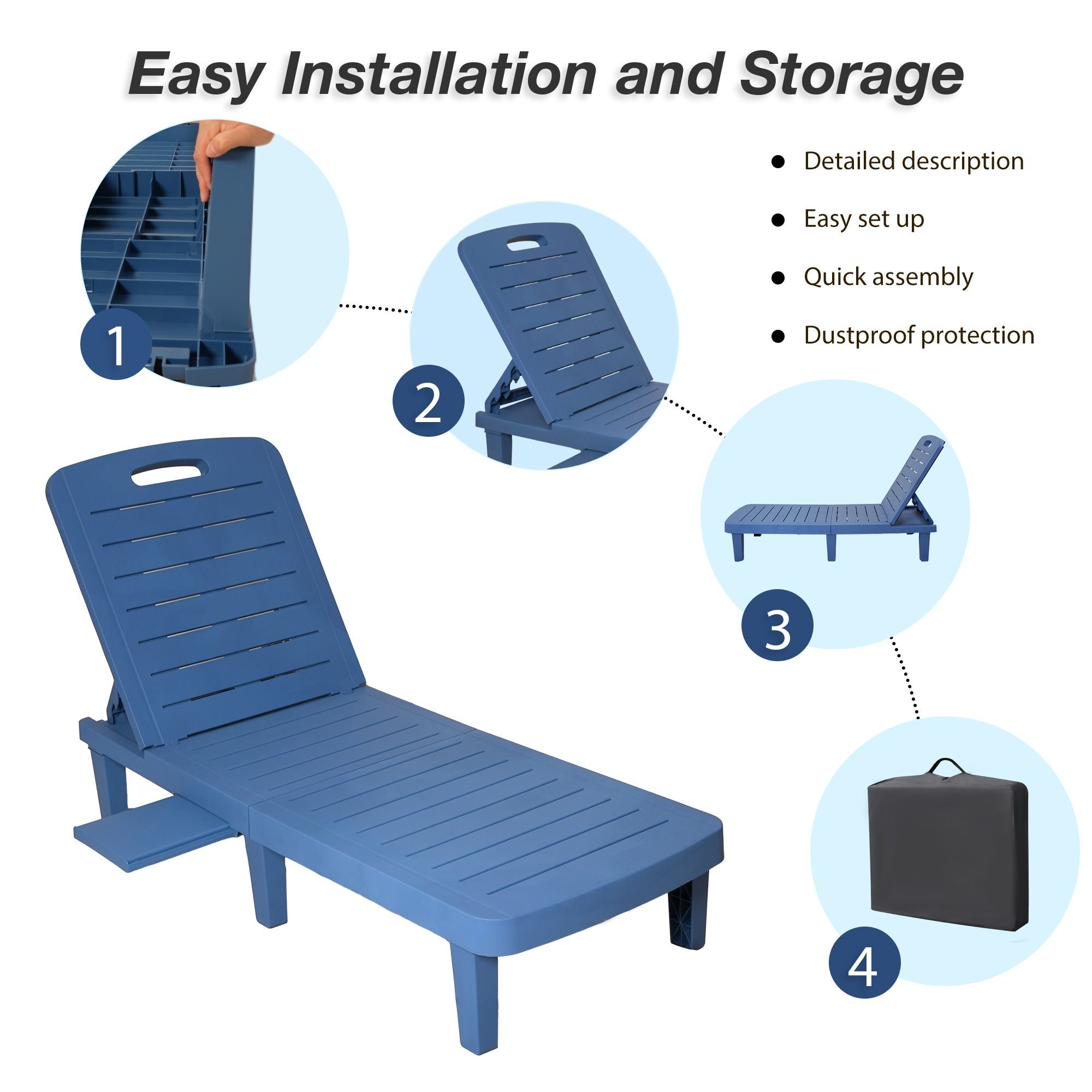 5.Easy Assembly: Lounge chairs for outside are easy to assemble. Just follow our detailed assembly instructions, and installation will be easy. Equipped with a storage bag, it can be easily stored when not in use, without taking up too much space.