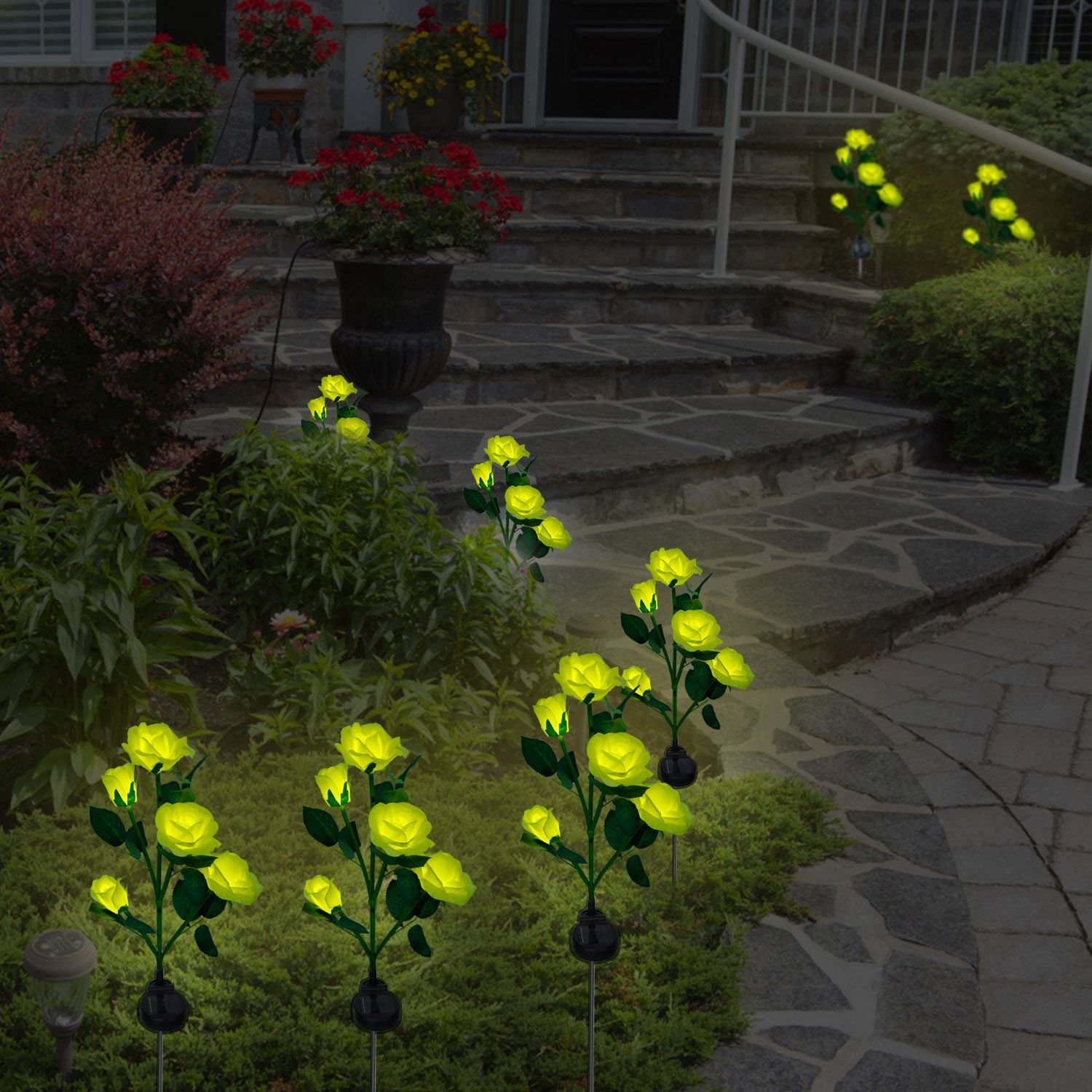 **IP44 WATER-RESISTANT & WEATHER-RESISTANT*:The flower solar garden lights are designed with high-quality stainless steel poles,also featured with IP44 water-resistant performance,heatproof and weather-resistant,2Pcs rose lights are able to survive heat,rain,cold and frost.