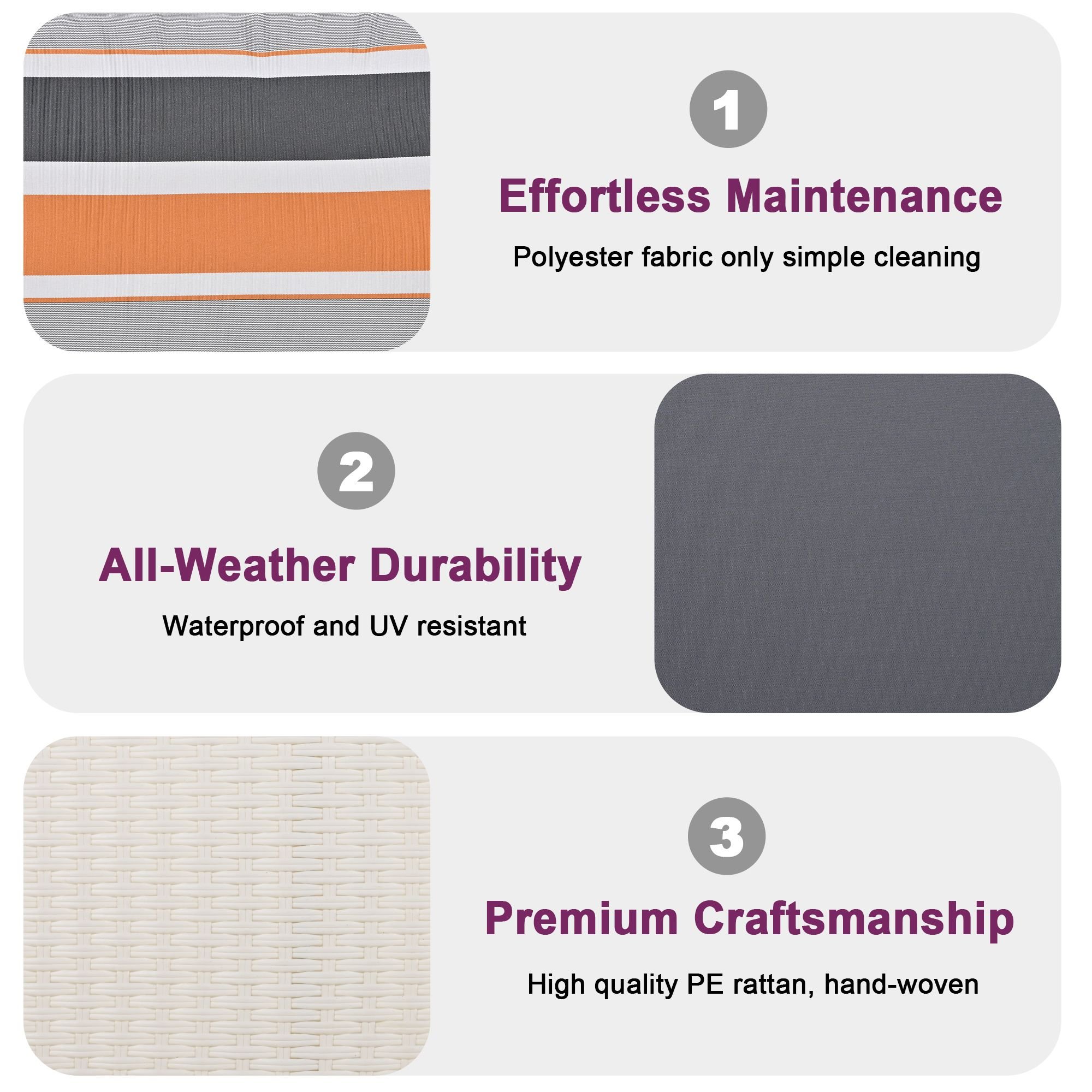 4.Vibrant Pillows: Accompanied by a generously sized seat cushion and back cushion, this ensemble is further enhanced by the addition of two vibrant pillows. These colorful accents not only offer an extra layer of comfort but also allow for personalized placement  whether nestled at your side or gently propped behind  ensuring a truly indulgent relaxation experience.