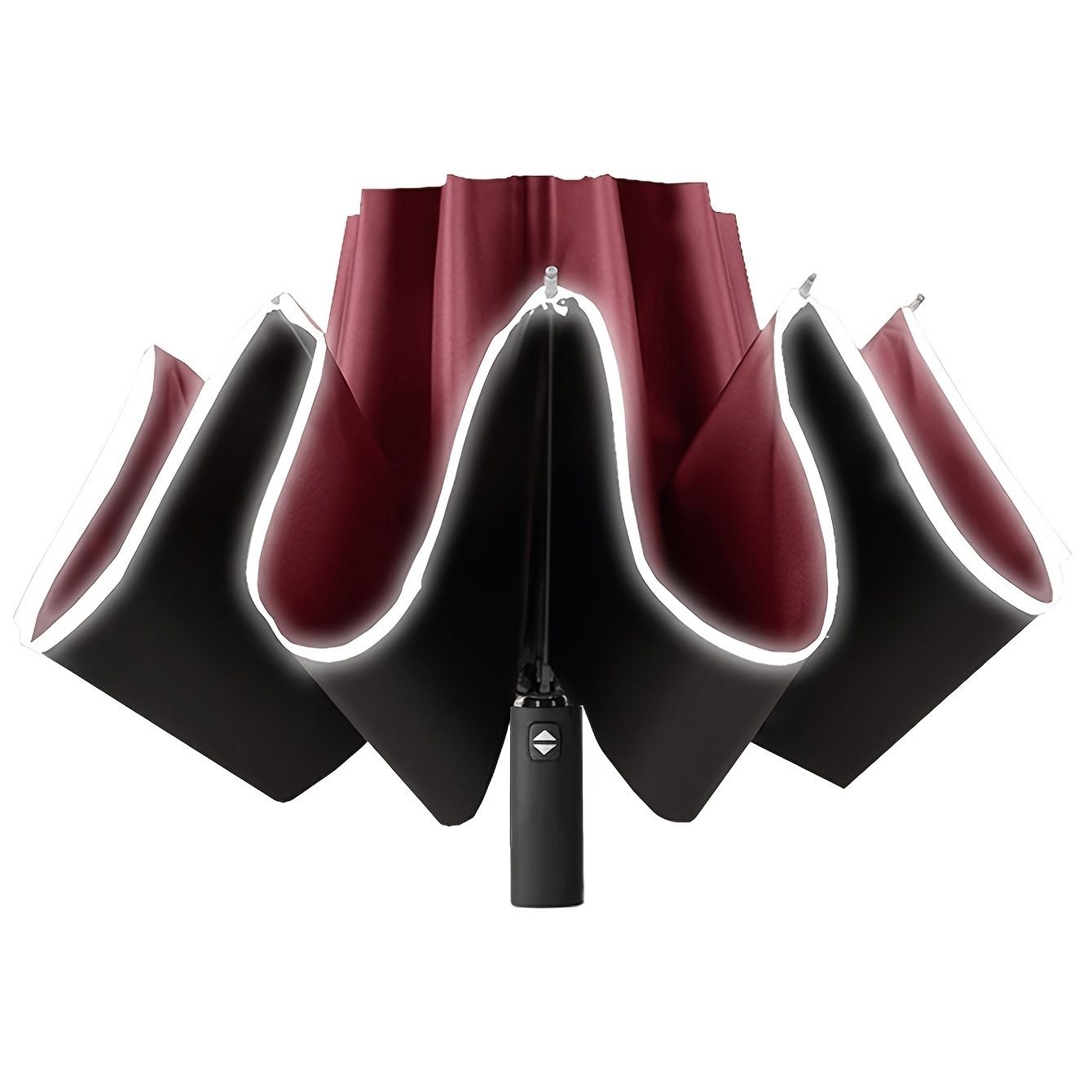 Umbrella Windproof Travel Umbrella Night Reflective Strip 99% Sun Protection Compact Folding Reverse Umbrella