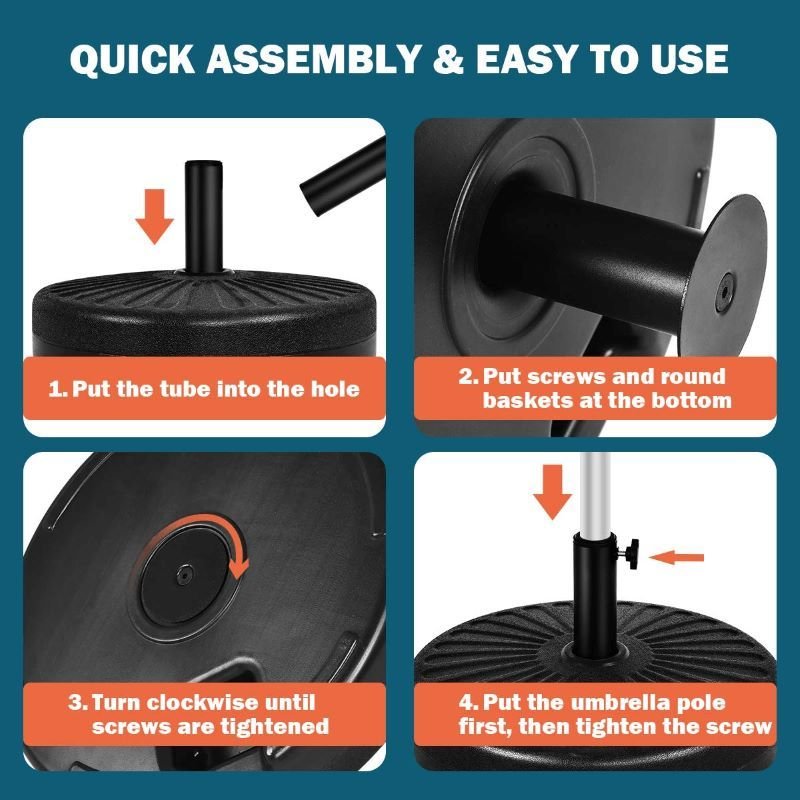 Made of durable HDPE material; all weather resistant; the steel pipe is galvanized and would not be corroded easily. It has good solidity and would not let the umbrella tilt easily.