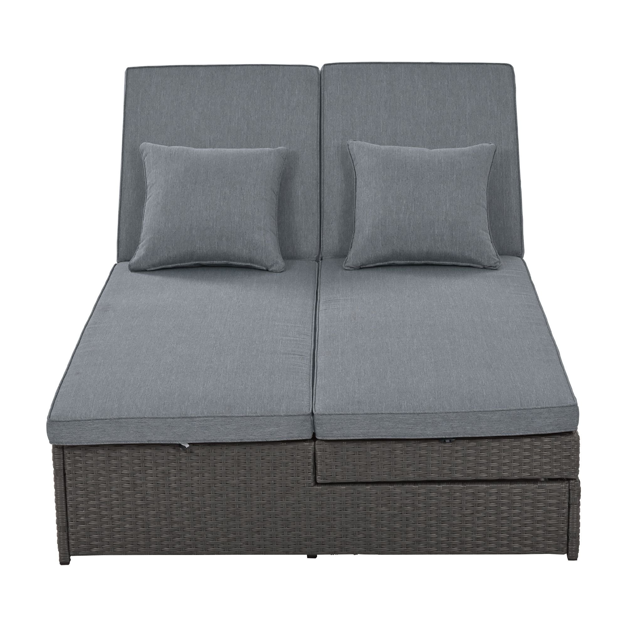 Outdoor Double Sunbed; Wicker Rattan Patio Reclining Chairs with Adjustable Backrest and Seat; Conversational Set for 2 Person