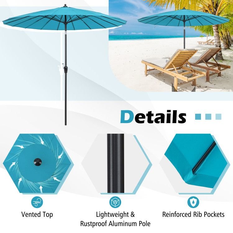 9 Feet Round Patio Umbrella with 18 Fiberglass Ribs