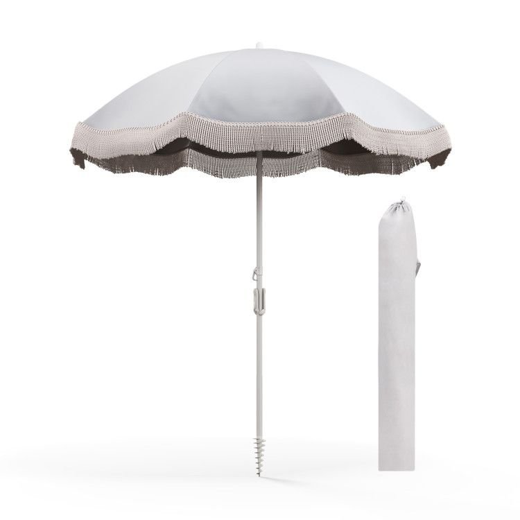 1.Fringe Adds Vintage Flair: Embellished with elegant fringe, decorative top and a tasteful pattern, the portable beach umbrella enhances the beauty of your leisure space, including garden, yard, patio, beach and poolside.