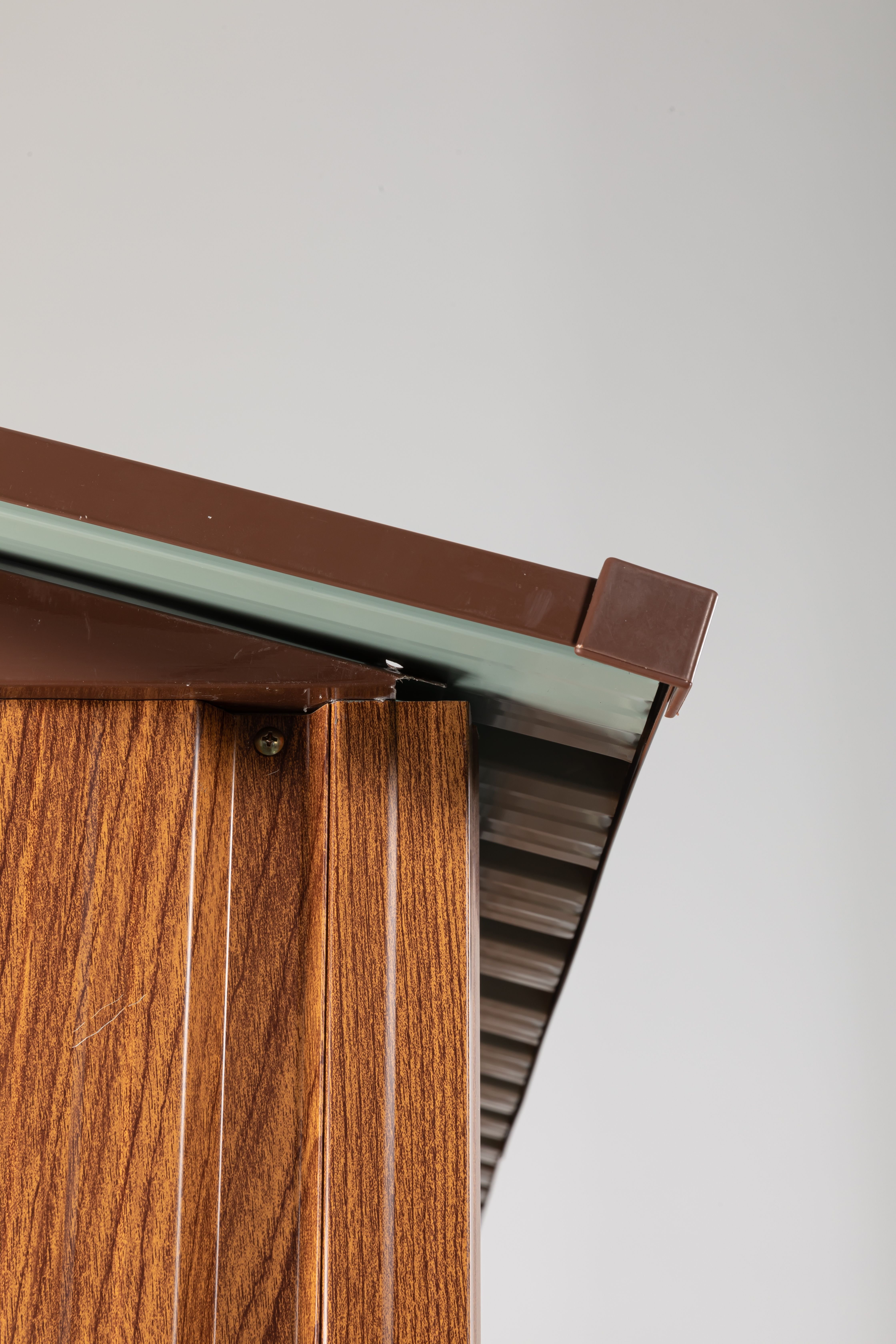 [Robust Construction] Nothing irks a garden hobbyist more than the sight of a collapsed shed. Luckily, this shed utilizes sui generis aluminum frames which greatly increase the overall sturdiness. On top of that, the galvanized steel panels, coated with eco-friendly painting, can endure harsh weather for at least 6 years.