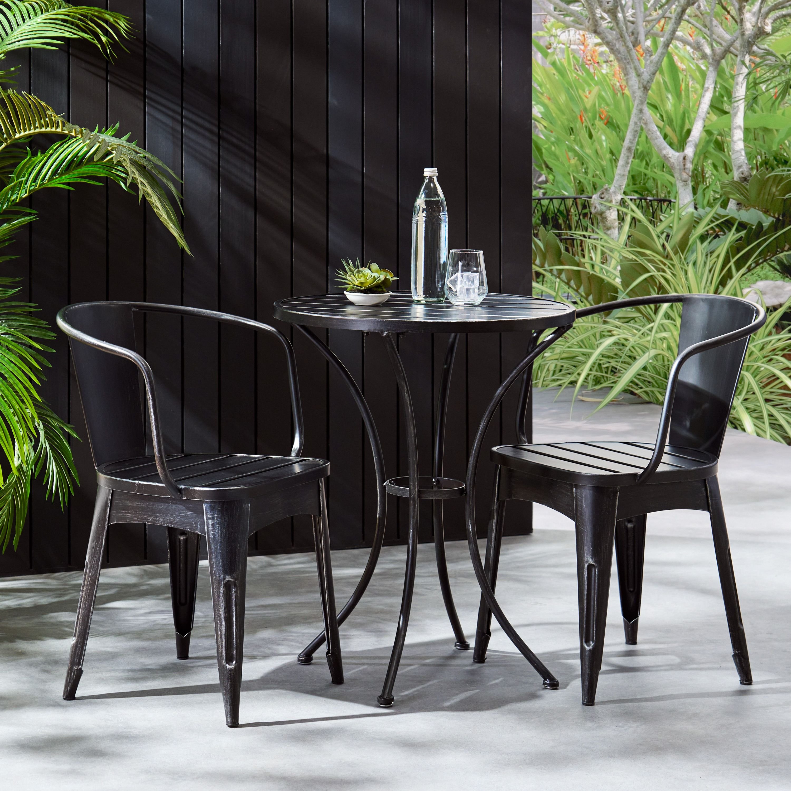 Constructed with powder-coated iron, this table-and-two-chairs set is water-resistant for long-lasting outdoor use