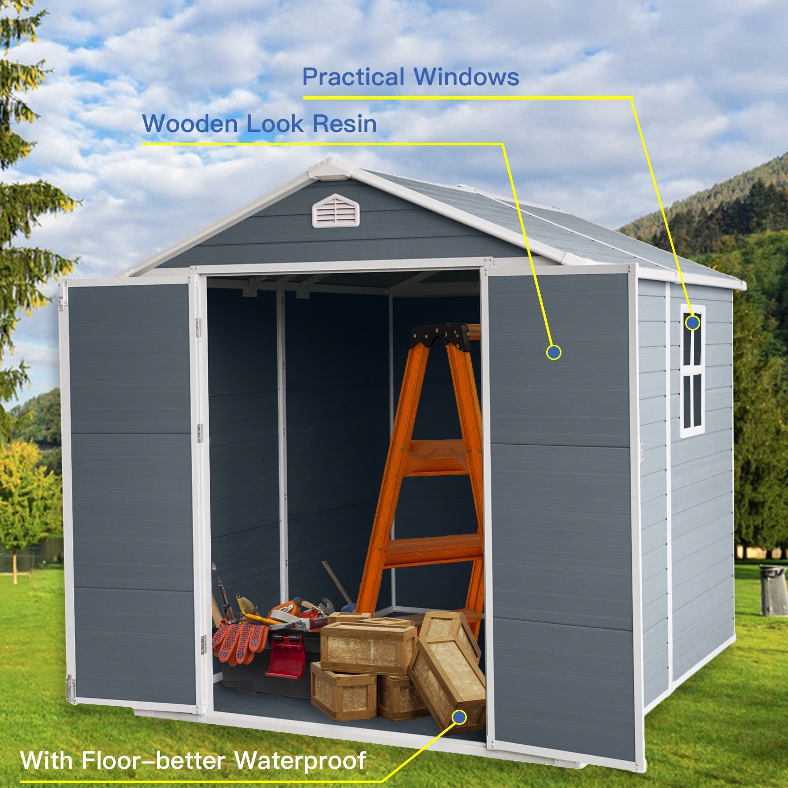 HEAVY-DUTY CONSTRUCTION: Metal reinforced, multi-wall resin panels provide water resistance and UV protection for all-weather durability, while the reinforced resin floor withstands heavy loads.