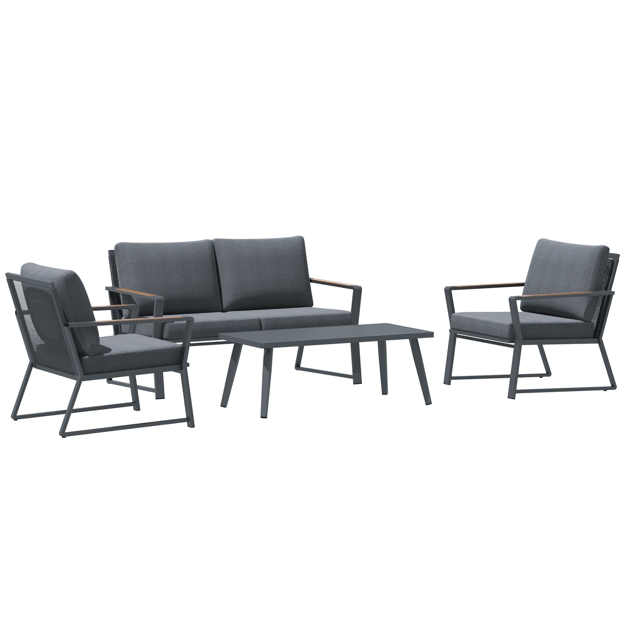 4 Piece Patio Furniture Set, Aluminum Conversation Set, Outdoor Garden Sofa Set with Armchairs, Loveseat, Center Coffee Table and Cushions, Dark Grey 4 Piece Patio Furniture Set, Aluminum Conversation Set, Outdoor Garden Sofa Set with Armchairs, Loveseat, Center Coffee Table and Cushions, Dark Grey 4 Piece Patio Furniture Set, Aluminum Conversation Set, Outdoor Garden Sofa Set with Armchairs, Loveseat, Center Coffee Table and Cushions, Dark Grey 4 Piece Patio Furniture Set, Aluminum Conversation Set, Outdoor Garden Sofa Set with Armchairs, Loveseat, Center Coffee Table and Cushions, Dark Grey 4 Piece Patio Furniture Set, Aluminum Conversation Set, Outdoor Garden Sofa Set with Armchairs, Loveseat, Center Coffee Table and Cushions, Dark Grey