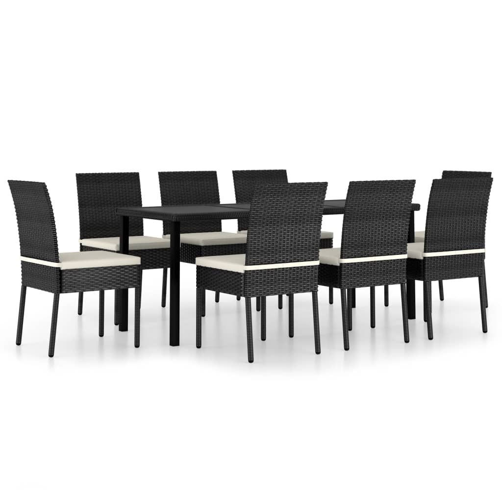 9 Piece Patio Dining Set Poly Rattan Black