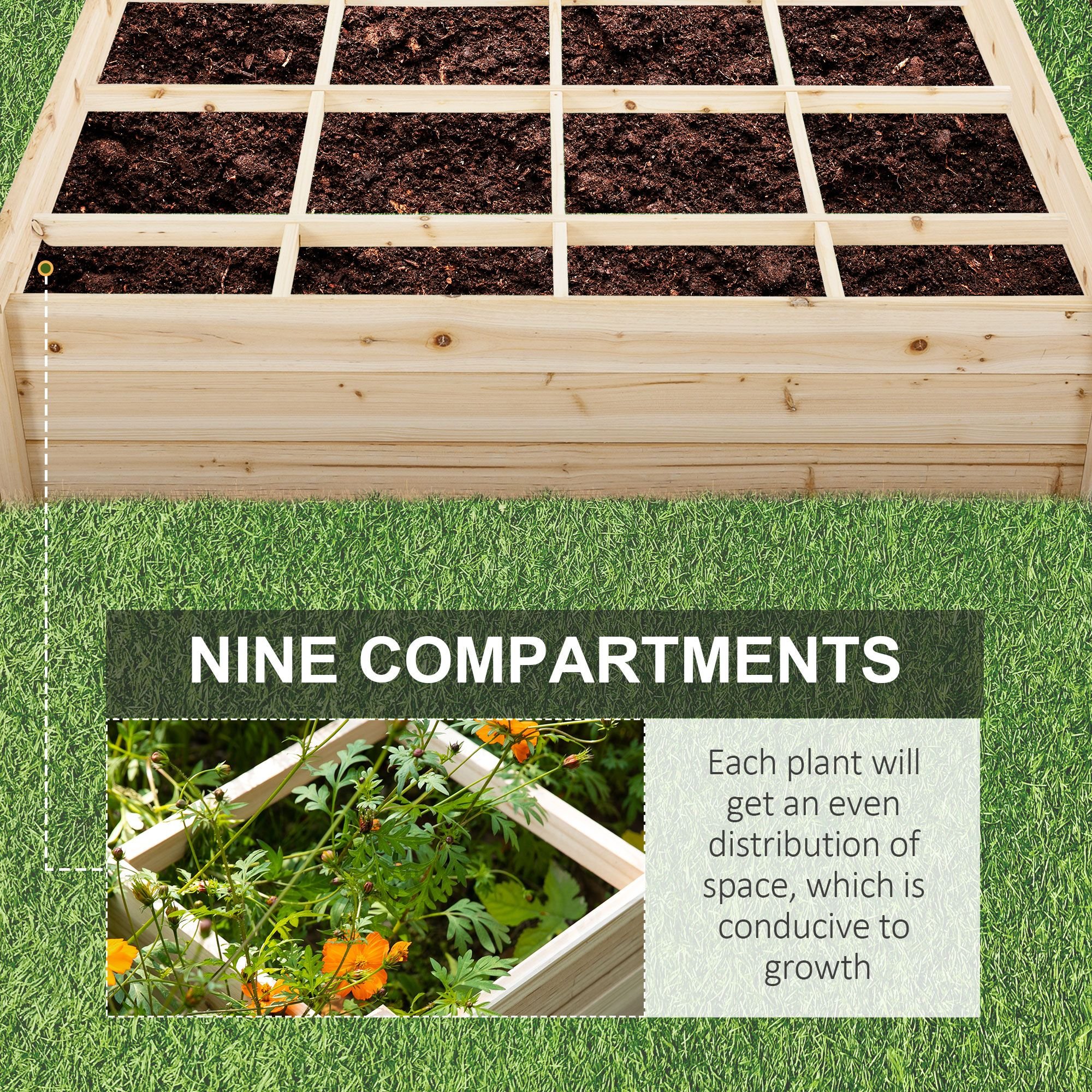 Outsunny Raised Garden Bed Kit, 4' x 4' Outdoor Wooden Planter Box with 9 Growing Grids, for Plants and Herbs