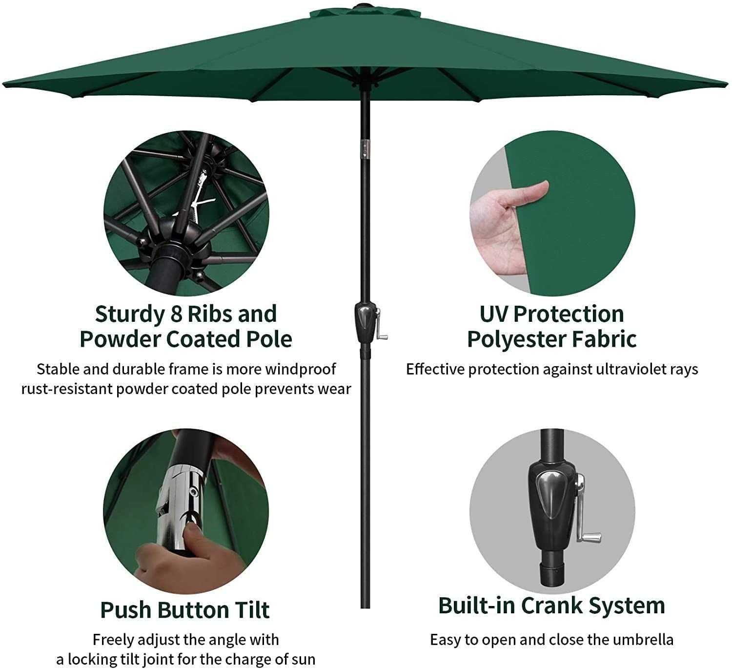 Simple Deluxe 9ft Outdoor Market Table Patio Umbrella with Button Tilt, Crank and 8 Sturdy Ribs for Garden, Green Simple Deluxe 9ft Outdoor Market Table Patio Umbrella with Button Tilt, Crank and 8 Sturdy Ribs for Garden, Green Simple Deluxe 9ft Outdoor Market Table Patio Umbrella with Button Tilt, Crank and 8 Sturdy Ribs for Garden, Green Simple Deluxe 9ft Outdoor Market Table Patio Umbrella with Button Tilt, Crank and 8 Sturdy Ribs for Garden, Green Simple Deluxe 9ft Outdoor Market Table Patio Umbrella with Button Tilt, Crank and 8 Sturdy Ribs for Garden, Green Simple Deluxe 9ft Outdoor Market Table Patio Umbrella with Button Tilt, Crank and 8 Sturdy Ribs for Garden, Green
