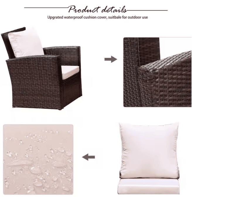 This patio set is crafted with a heavy-duty, powder-coated steel frame and weather-resistant PE rattan. With the appearance of clean and elegant, the outdoor wicker conversation set has various