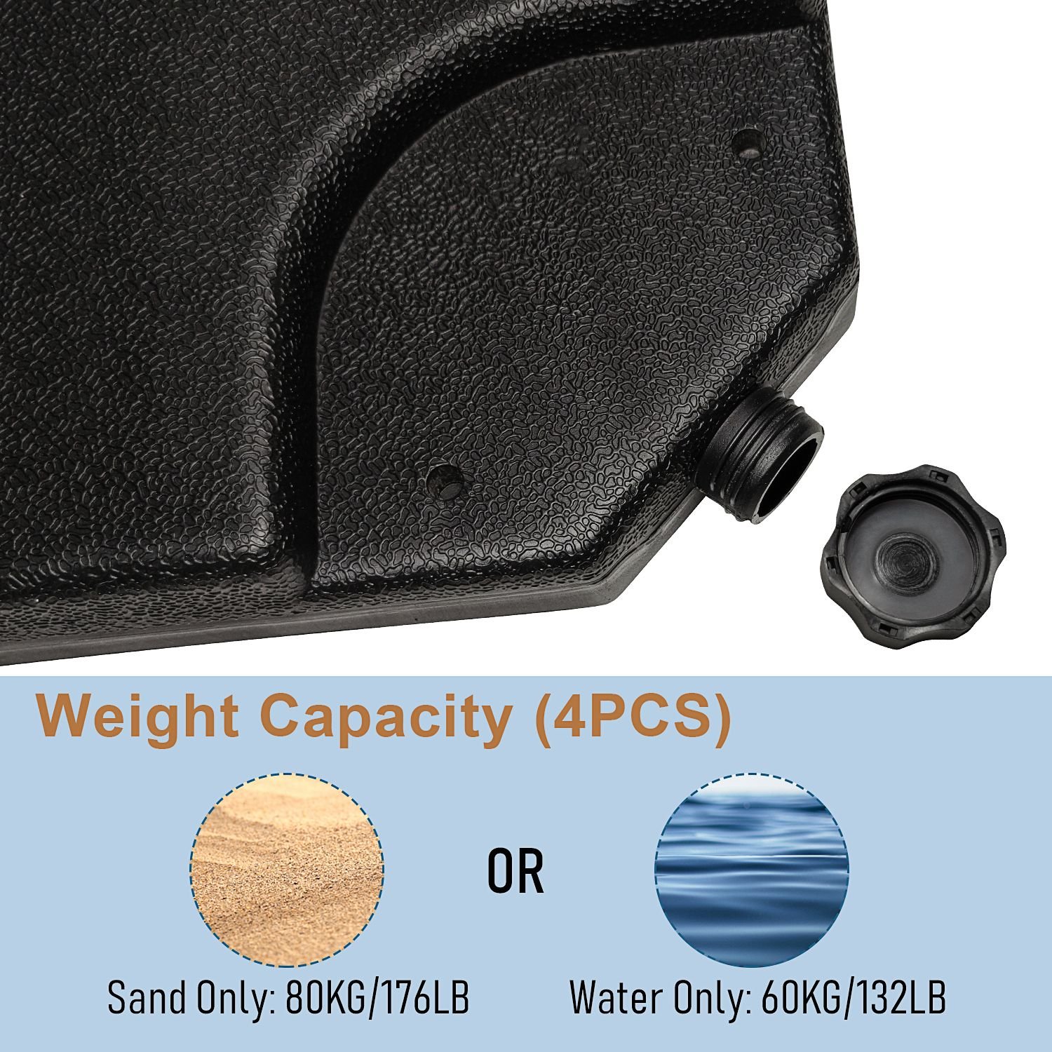 Artpuch 4-piece Square Offset Umbrella Base Plastic Cantilever Patio Umbrella Base Stand, Water/Sand Filled. Enjoy your summer life. Our patio umbrella base is made of heavy-duty HDPE plastic with weather-resistant coating, durable and waterproof, suitable for cantilever offset umbrella with cross bars, ideal for commercial and residential use, such as garden, backyard, balcony, hotel, etc.