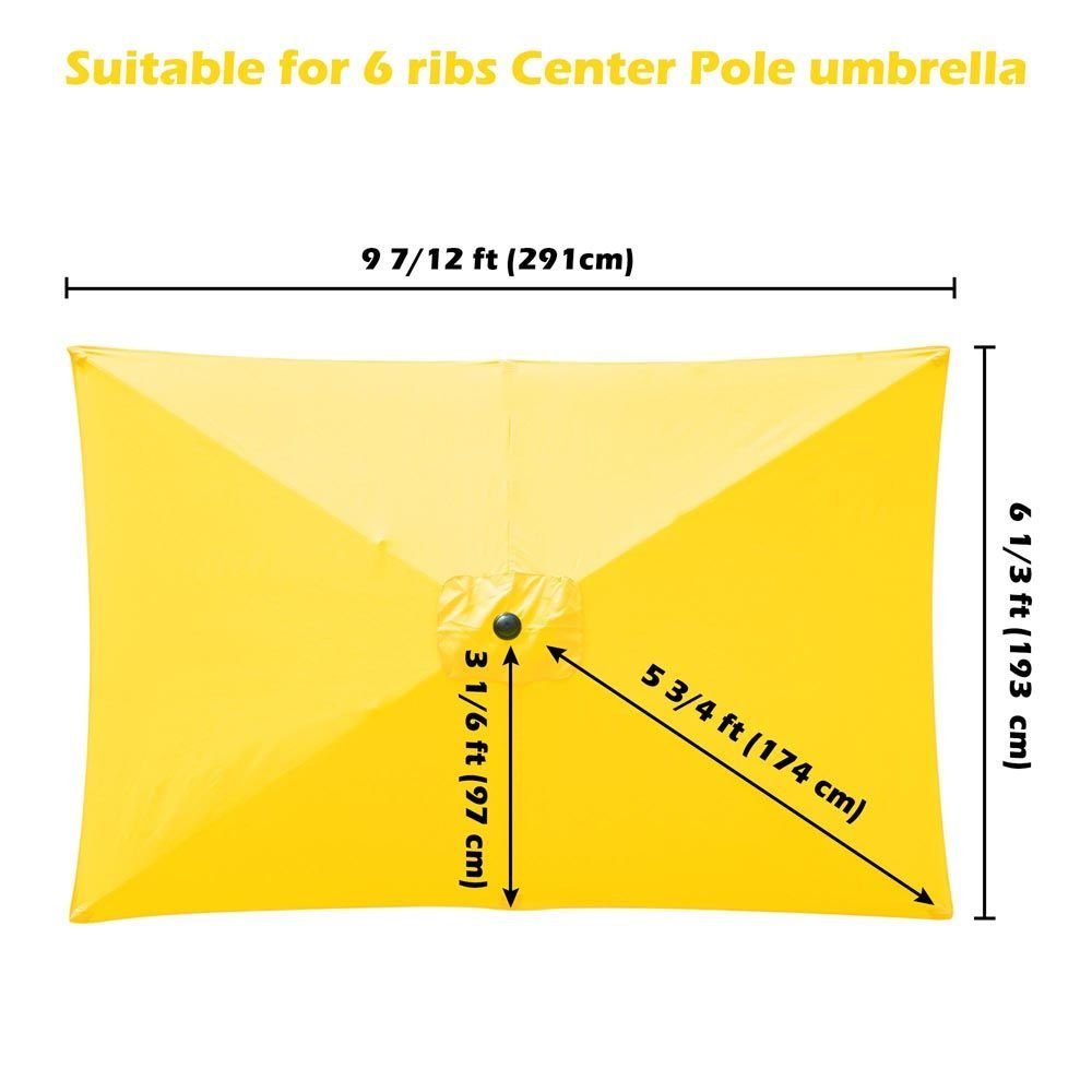 • 10x6ft Universal Replacement rectangle umbrella canopy; fits for 6 ribs rectangular central pole umbrella (with 6ft long ribs & 3ft short ribs); provides shade for your patio; garden; pool deck; etc.(Canopy Only)