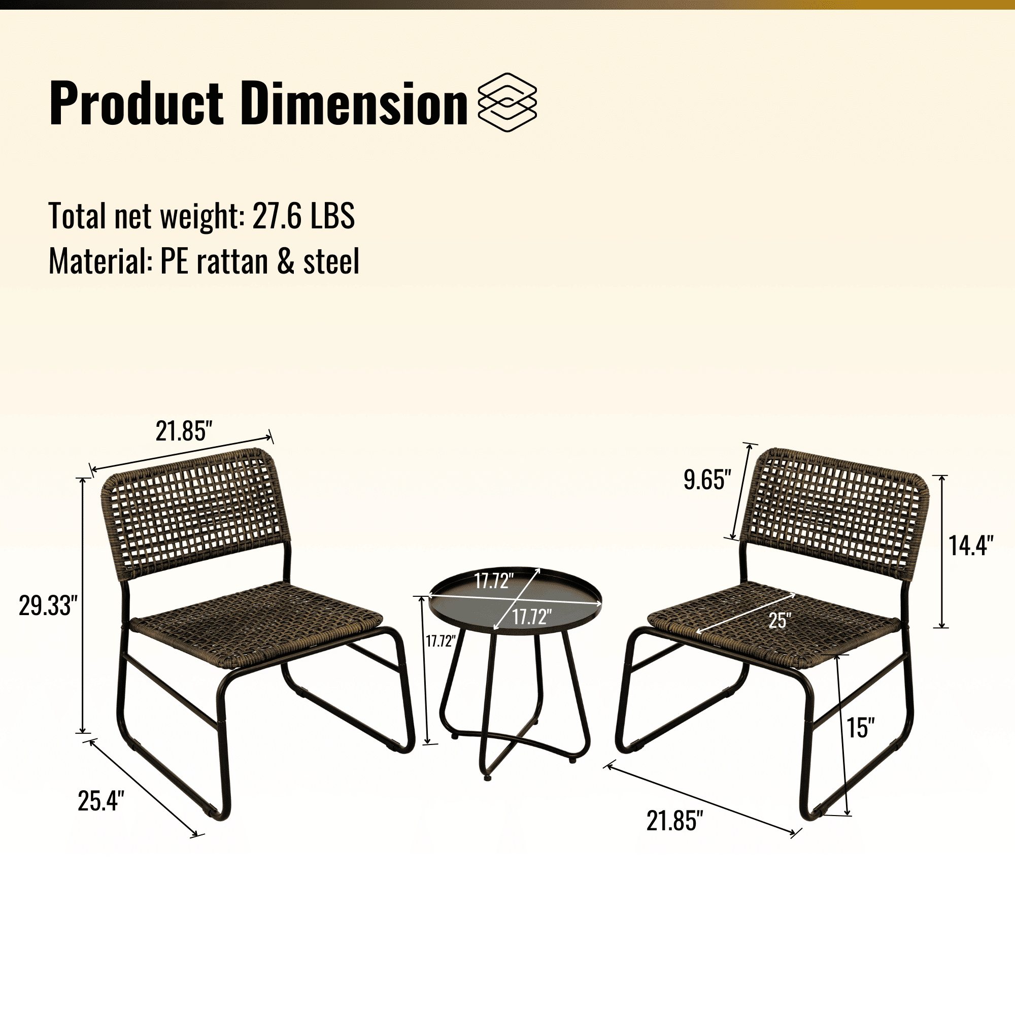 Patio Furniture Set 3 Piece Mixture Pattern PE Rattan Steel Frame And Modern Round Table, Brown and Black