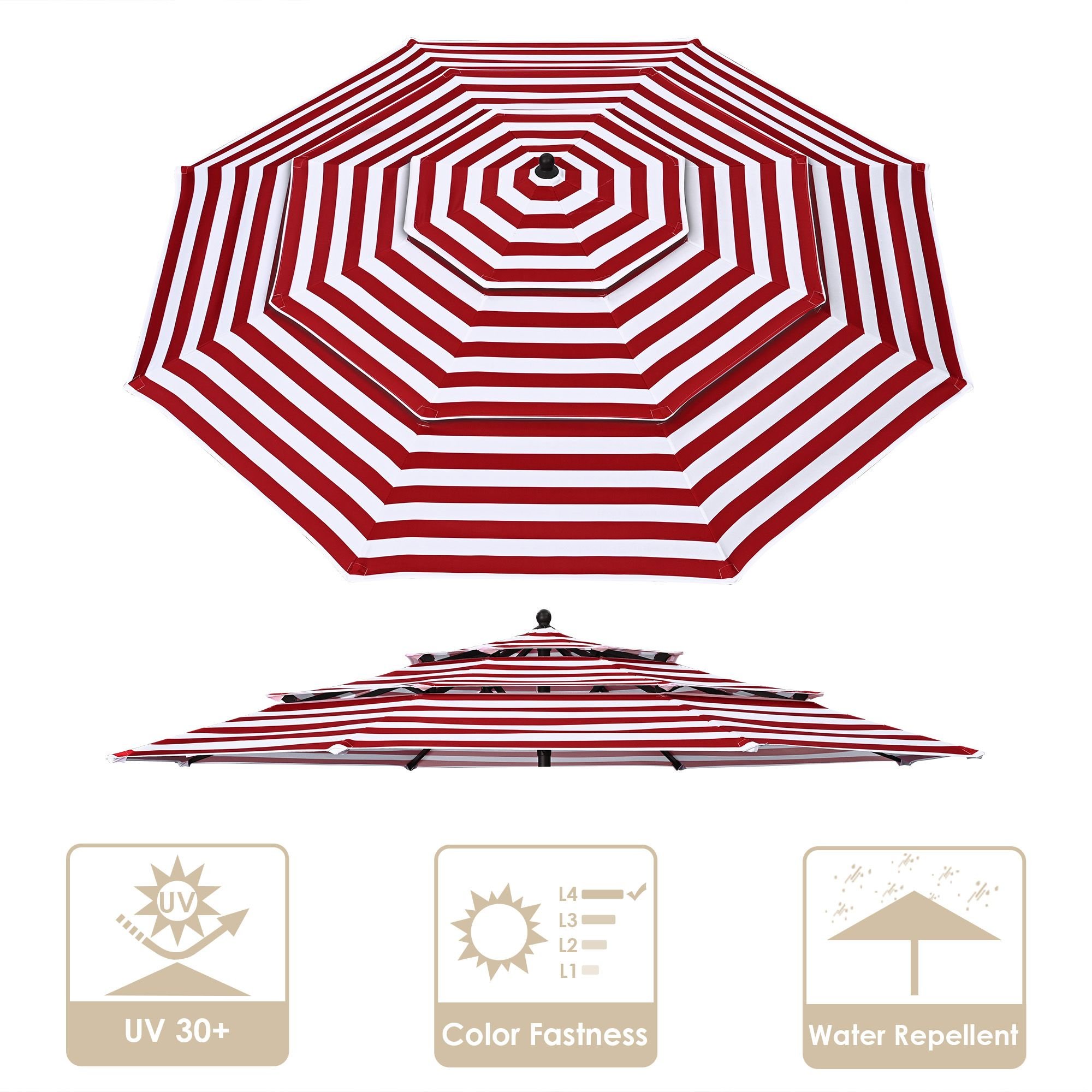Fits for 9 FT 3-tier and 8 ribs umbrellas; only suitable for center pole umbrella.