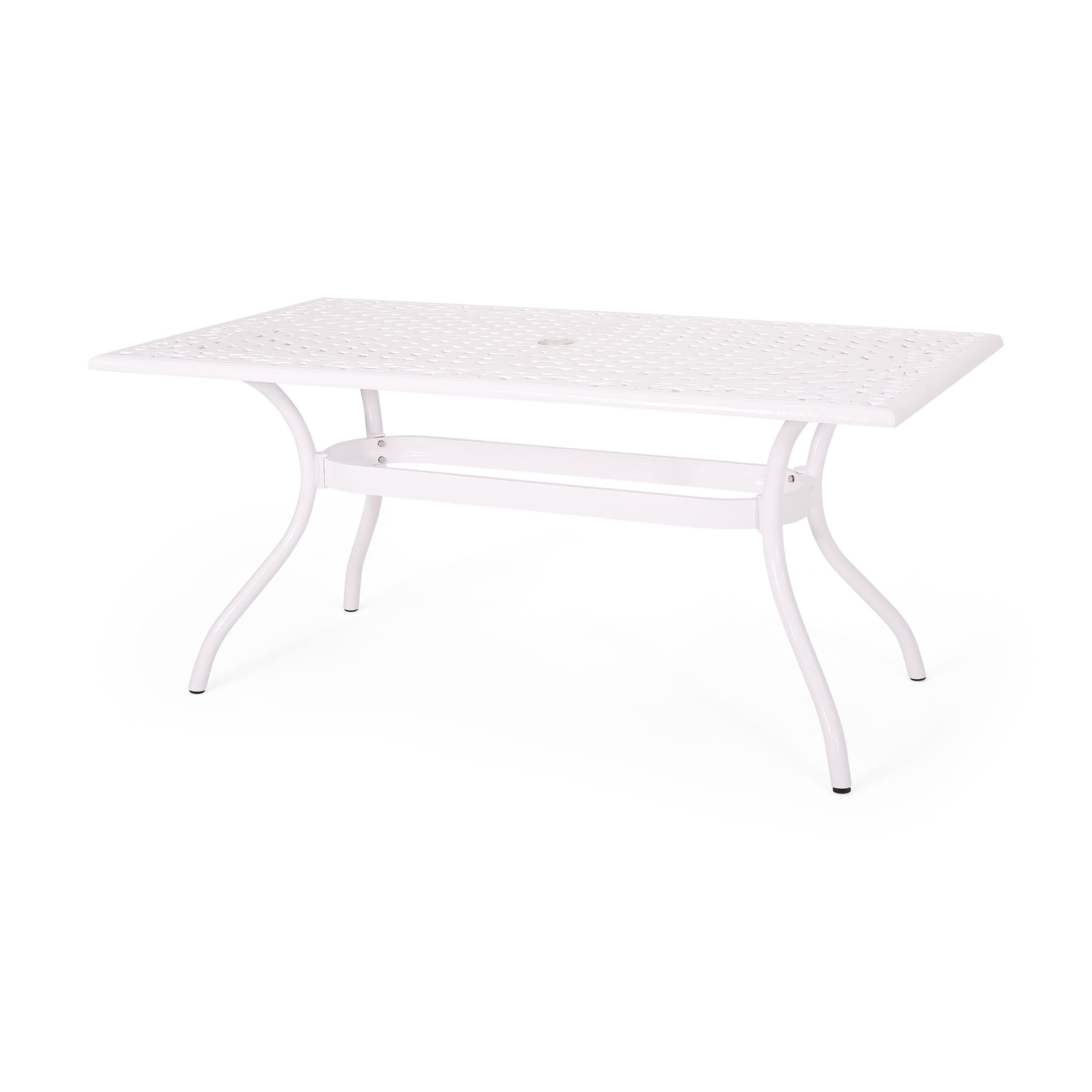 Umbrella Holder: This rectangular table includes a hole in the center of the tabletop for you to insert an outdoor umbrella of your choice, allowing you to enjoy your yard in shaded luxury.