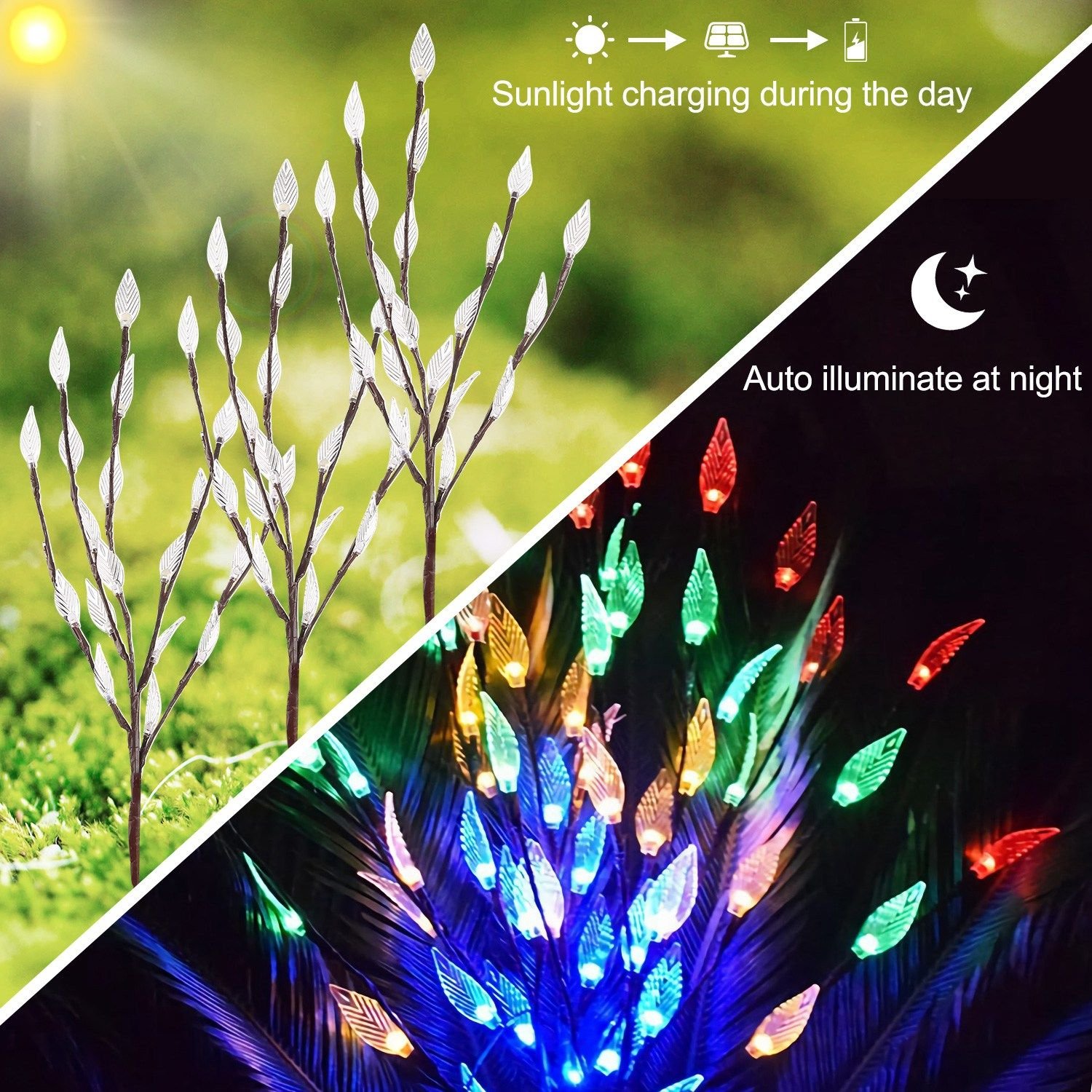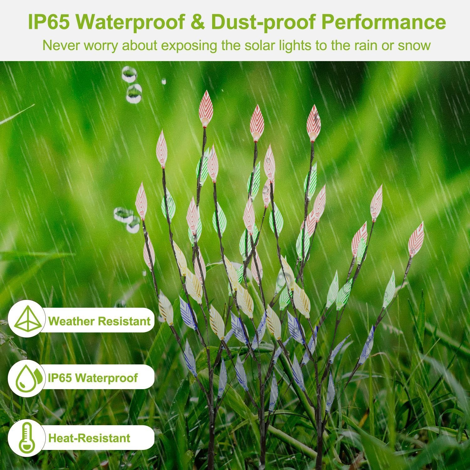 **60 LED LIGHTS*:Our Solar Garden Lights contain a total of 60 LED lights,made from a strong wire and ABS plastic. Each LED has a delicate leaf shape housing giving off the effect of a small tree with light up leaves for enhancing your garden,lawn,pathways and borders.