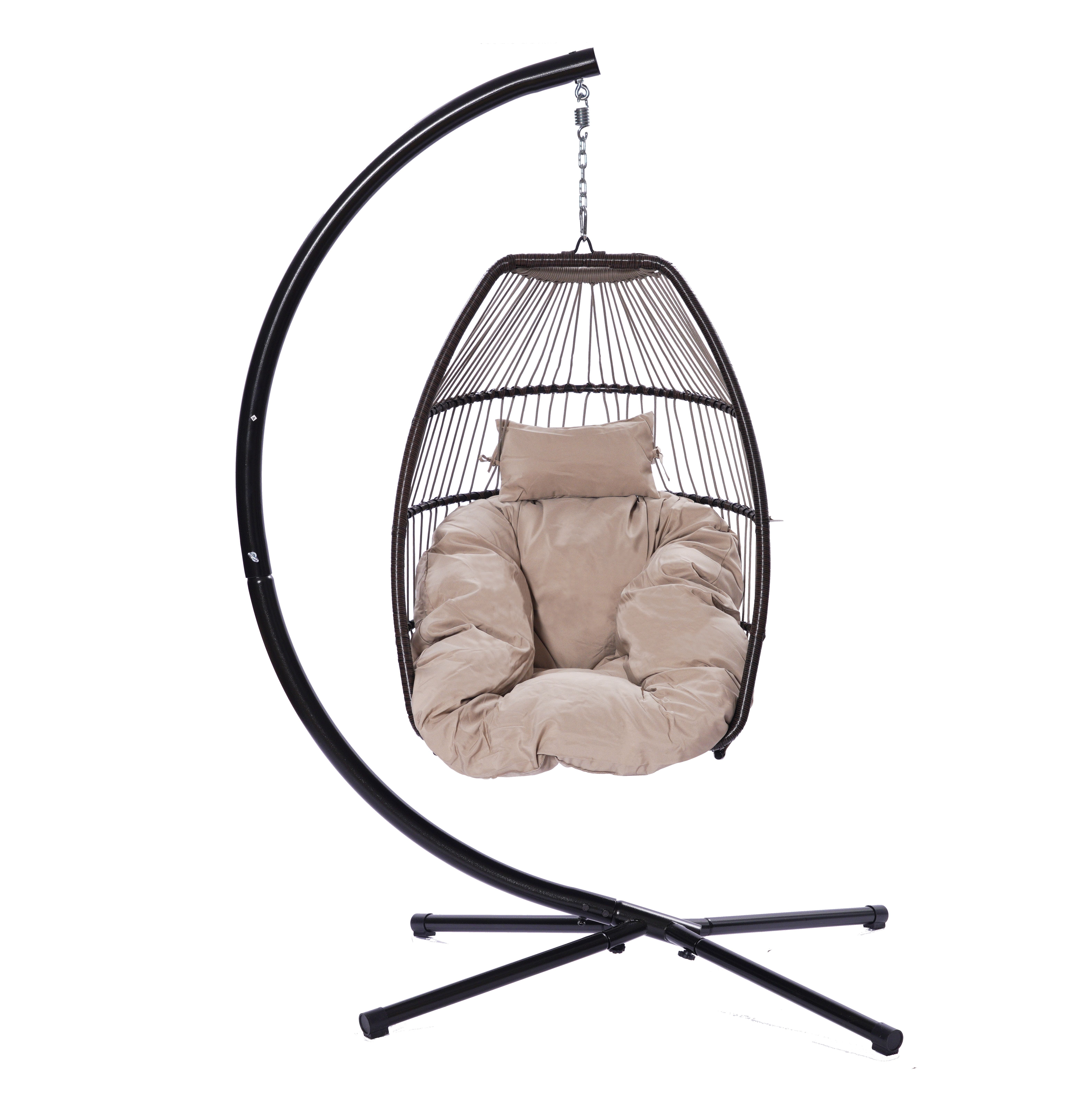 [Humanized Design]The seat cushion is thick enough that you will never feel the structure of the swing chair. Additional headrest pillow offers lounging comfort like nothing you’ve experienced before.The curved design of the back of the egg chair is in line with the comfort requirements of human body.The folding design of the chair makes it easy to store .