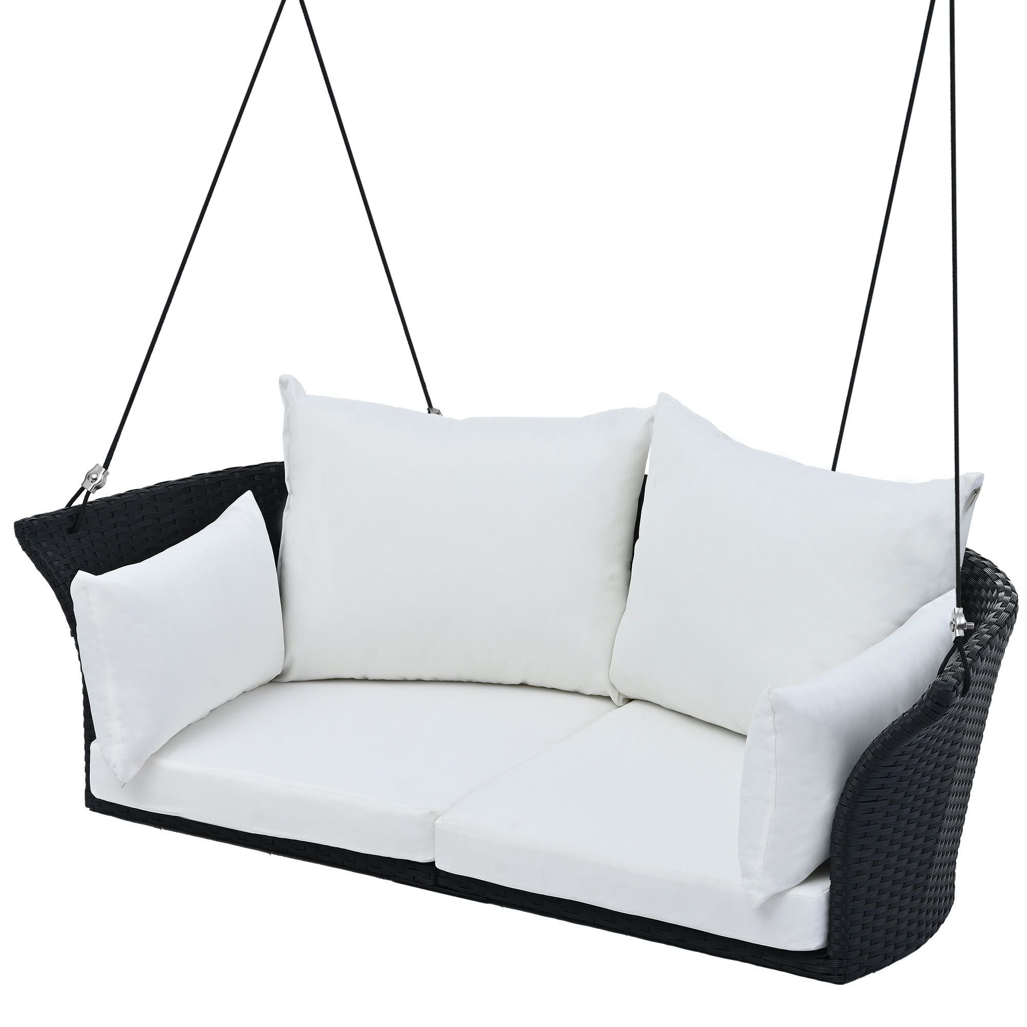 GO 51.9" 2-Person Hanging Seat, Rattan Woven Swing Chair, Porch Swing With Ropes, Black Wicker And White Cushion GO 51.9" 2-Person Hanging Seat, Rattan Woven Swing Chair, Porch Swing With Ropes, Black Wicker And White Cushion GO 51.9" 2-Person Hanging Seat, Rattan Woven Swing Chair, Porch Swing With Ropes, Black Wicker And White Cushion GO 51.9" 2-Person Hanging Seat, Rattan Woven Swing Chair, Porch Swing With Ropes, Black Wicker And White Cushion GO 51.9" 2-Person Hanging Seat, Rattan Woven Swing Chair, Porch Swing With Ropes, Black Wicker And White Cushion GO 51.9" 2-Person Hanging Seat, Rattan Woven Swing Chair, Porch Swing With Ropes, Black Wicker And White Cushion