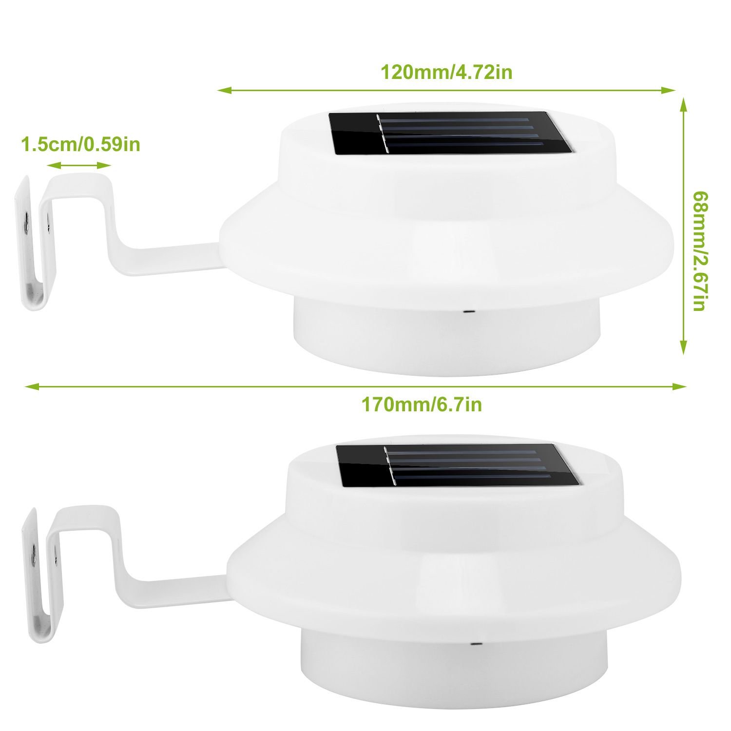 **IP65 Waterproof*:With the waterproof degree of IP65,this solar gutter lights can perform well in outdoor area despite of the weather all year round. So you can use our gutter waterproof lamp in rainy,snowy,frost or sleet days without much worry.