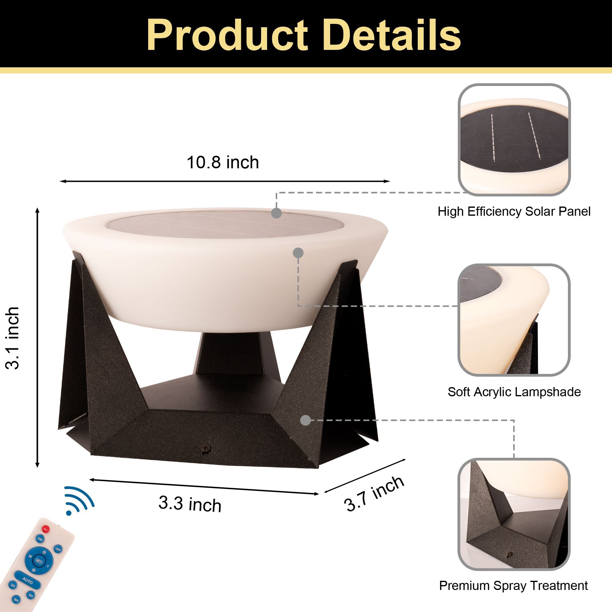 Solar-Powered Efficiency: No wiring or electricity needed—this light harnesses the sun's energy, automatically charging during the day and lighting up at dusk.Contemporary Design: The clean lines and minimalist design make this post light a stylish addition to any outdoor space, blending seamlessly with modern or traditional décor.Weather-Resistant Build: Crafted from durable materials, this post light is designed to withstand the elements, ensuring long-lasting performance in any weather.Energy-Saving LED: Equipped with energy-efficient LED bulbs, this light provides bright illumination while keeping your energy costs low.Easy Installation: Simply position the light in a sunny spot and secure it to the ground—no complicated wiring or tools required.
