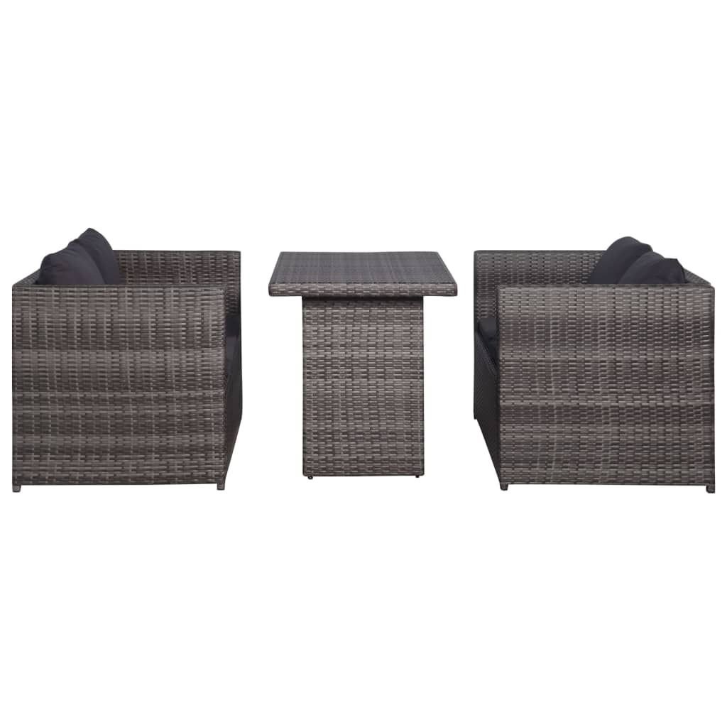 3 Piece Bistro Set Poly with Cushions Rattan Gray