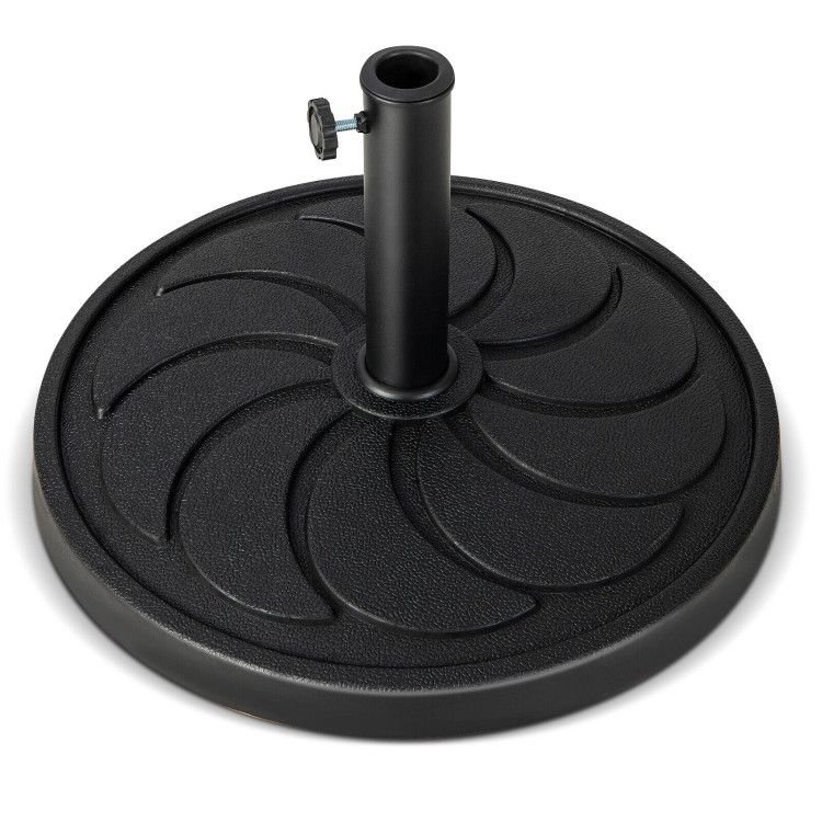 3.Security and Stability: The heavy-duty round umbrella stand measures 21.5" x 13.5" (Dia. x H) and weighs 40 lbs, which is large and heavy enough to withstand wind. More than that, there exists an adjustable fixed knob for stabilizing the pole, preventing wobbling.