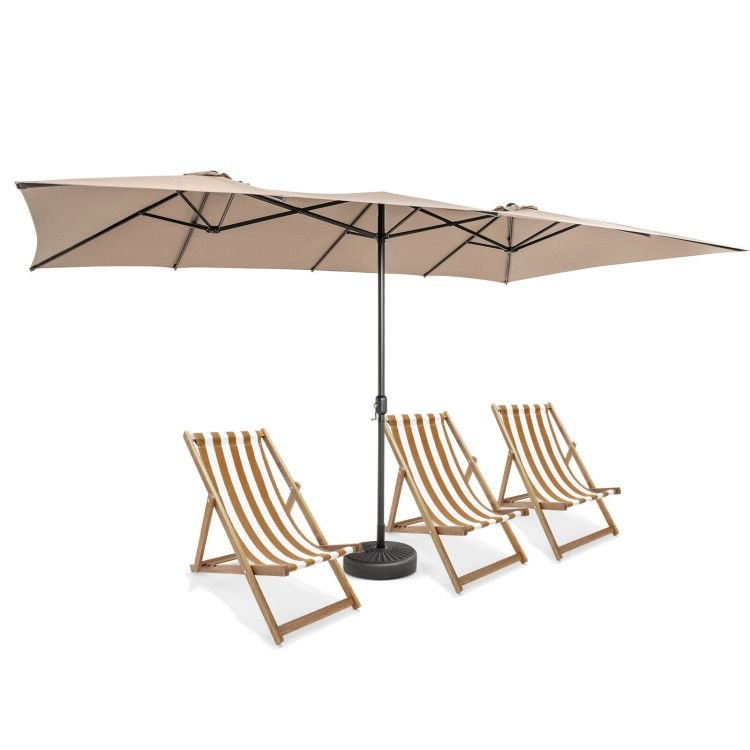 ● Extra-Large Shading Area: The double-sided patio umbrella measures 15 x 9 x 8.6 ft (L x W x H), providing a large shading area of 135 sq. Ft for your outdoor activities. It applies to the courtyard, patio, garden, beach, poolside, terrace, cafe shop, or any other residential or commercial occasion.