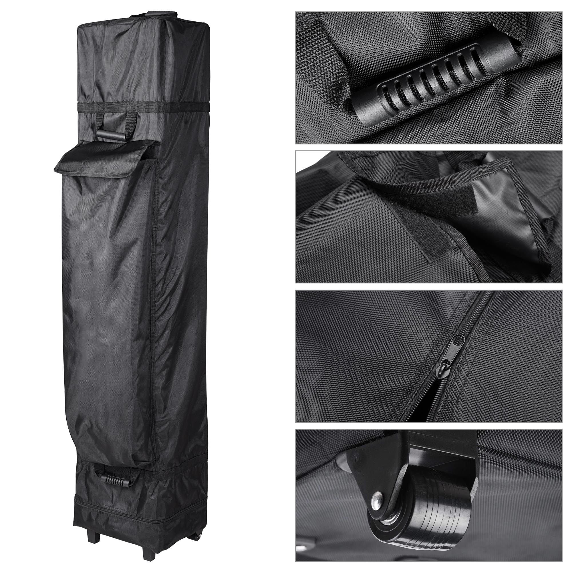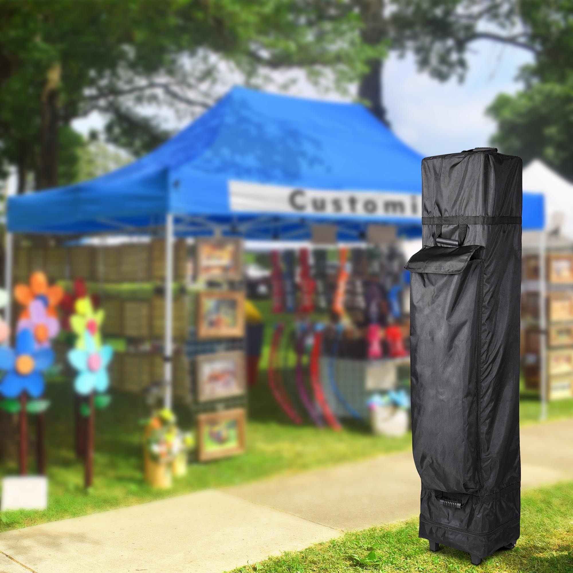 - 12 13/16" x 11" 1680D universal canopy carry bag with wheels, fitting for 10ft x 15ft pop-up canopy when closed, with 2 roller wheels for easy transport and 3 handles that 1 on top for dragging the bag to roll and 2 on side for easy lifting
