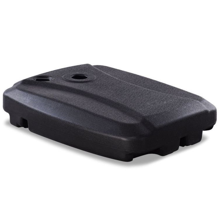 It's constructed of heavy-duty HDPE plastic with weather resistant UV protection that prevents color from fading and easy to maintain. It can be filled with 132 lbs water, so the plates provide additional weight which can make your patio umbrella stand perfectly in windy conditions. You don't need to worry any puff of wind may disturbe your summer relax in the shade.