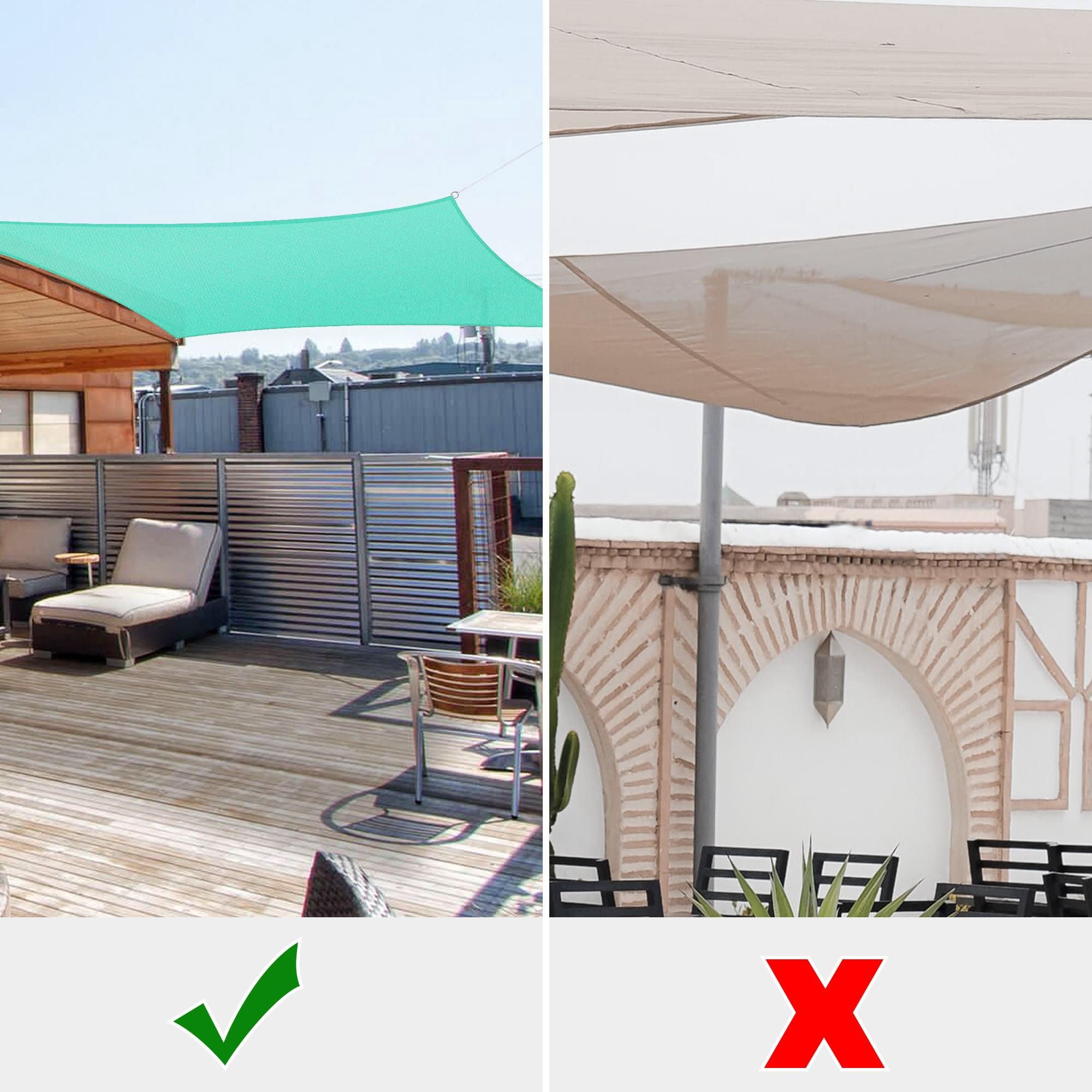 - HDPE Reduces Heat Transfer - Made by 100% brand new 185GSM HDPE material to efficiently reduce the temperature under sail about 50°F (10°C), excellent breathability to allow breeze to pass through, offers a cool and airy shelter on hot days